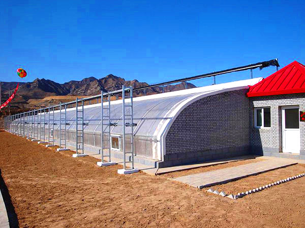 前坡面夜間用保溫被覆蓋,東、西、北三面為圍護墻體的單坡面塑料溫室,統稱為日光溫室。其雛型是單坡面玻璃溫室,前坡面透光覆蓋材料用塑料膜代替玻璃即演化為早期的日光溫室。日光溫室的特點是保溫好、投資低、節(jié)約能源,非常適合我國經濟欠發(fā)達農村使用。
